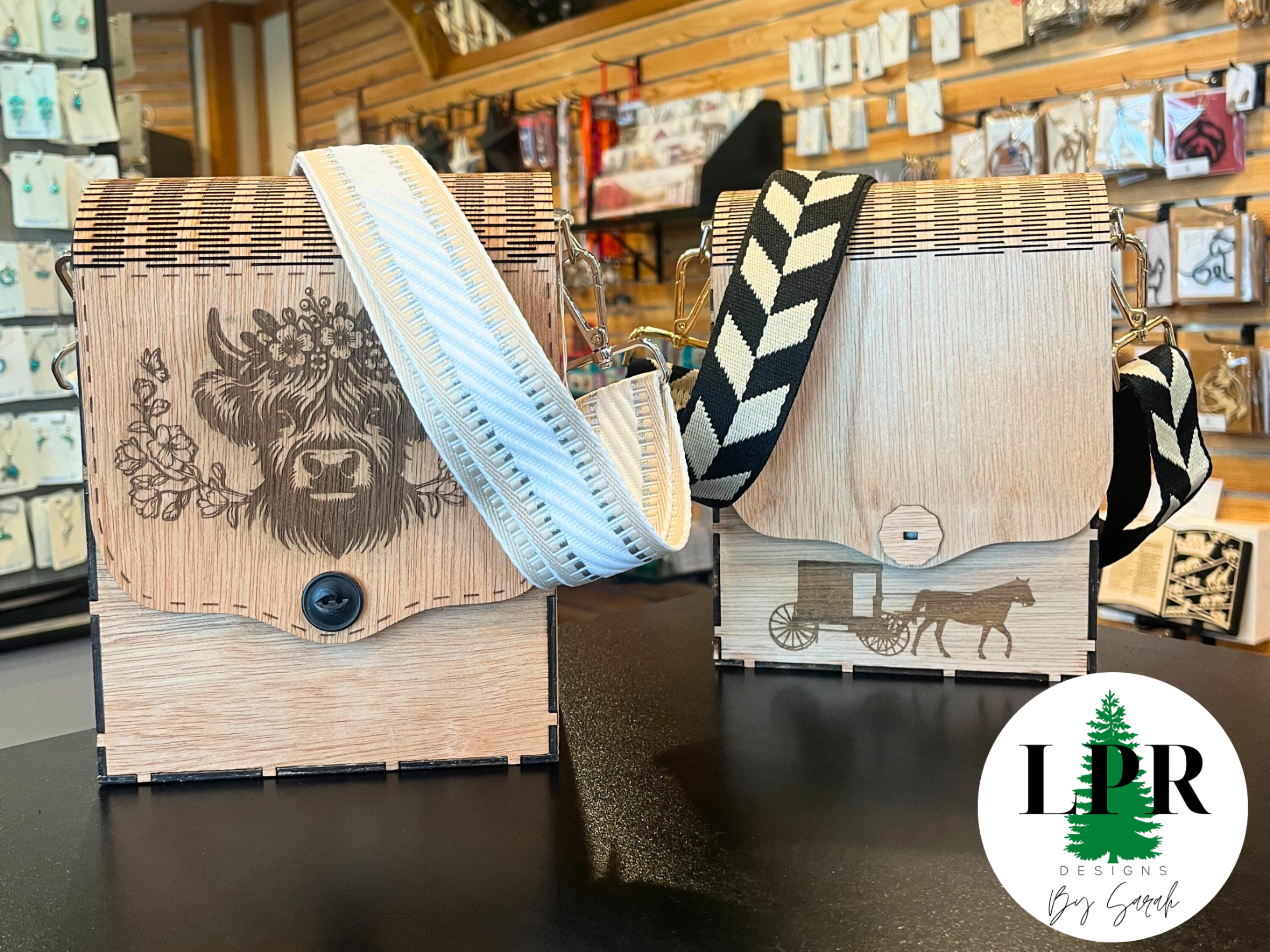 Sarah, a talented Miller’s employee and artisan, creates beautiful laser-cut wood pieces and unique jewelry crafted from wood, epoxy, and other precision-cut materials. Her collection also includes hand-stitched kitchen towels, clips, and thoughtfully designed accessories.
