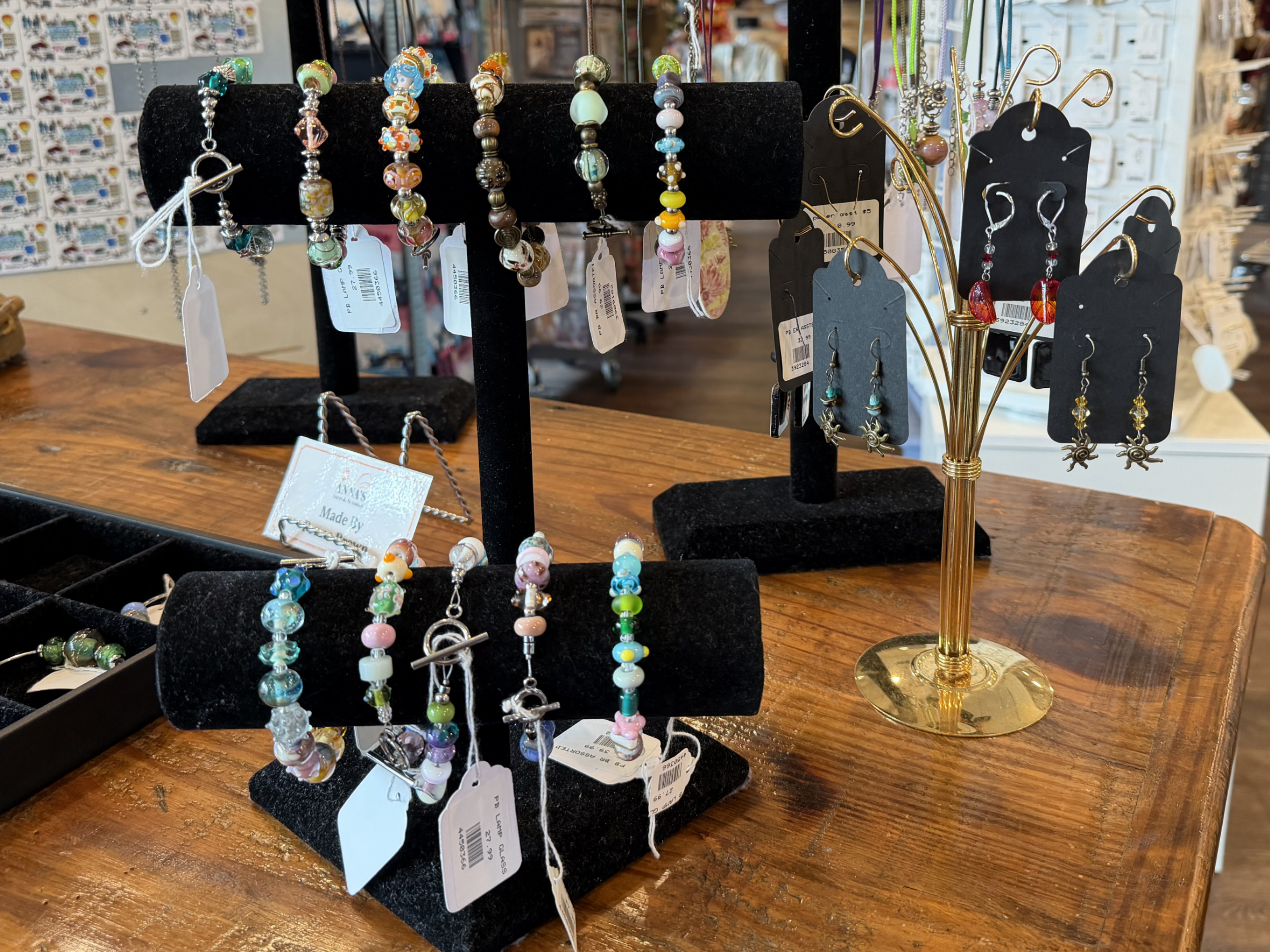 Penne, a Miller’s employee and artisan, creates beautiful hand-crafted glass jewelry, with each piece thoughtfully designed to showcase color, detail, and individuality.