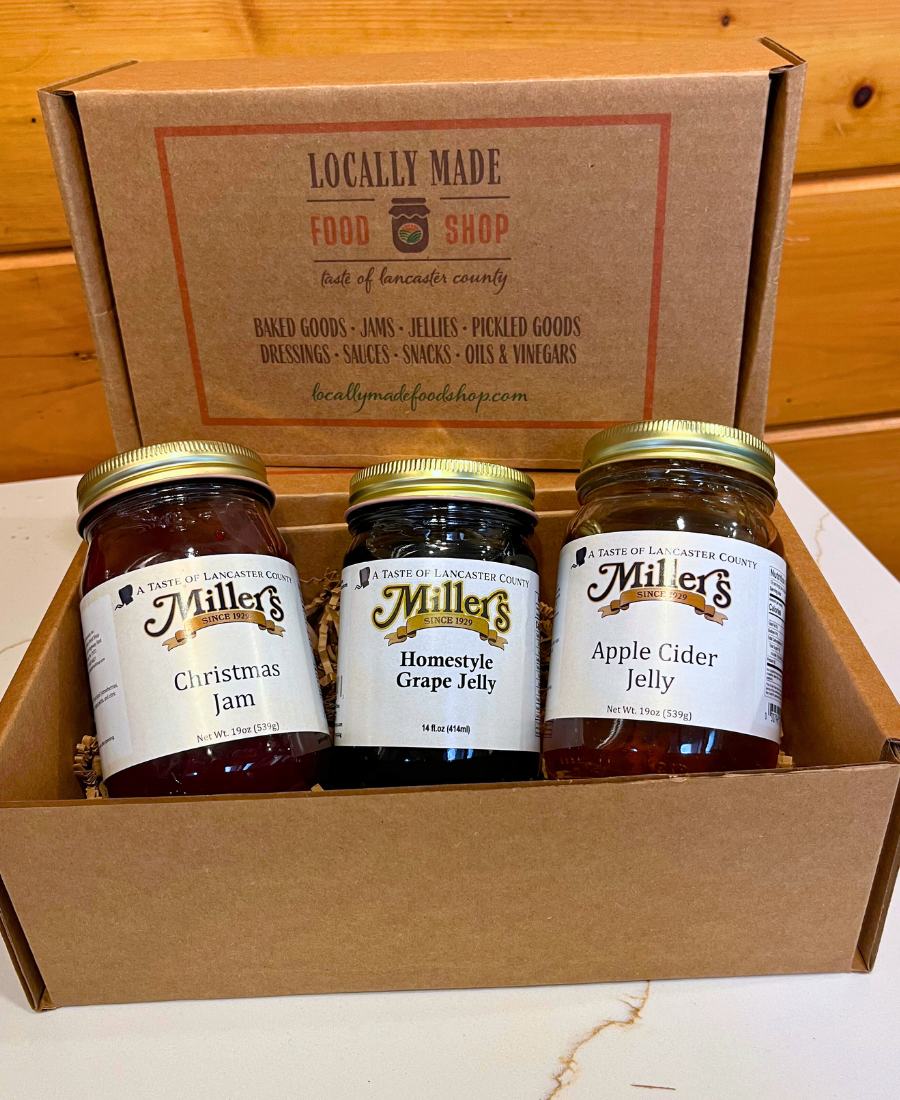 Looking for a meaningful way to thank clients or celebrate employees? We specialize in Lancaster County–inspired gifts from Locally Made Food Shop and Miller’s Bakery — handcrafted, locally sourced, and ready to impress.