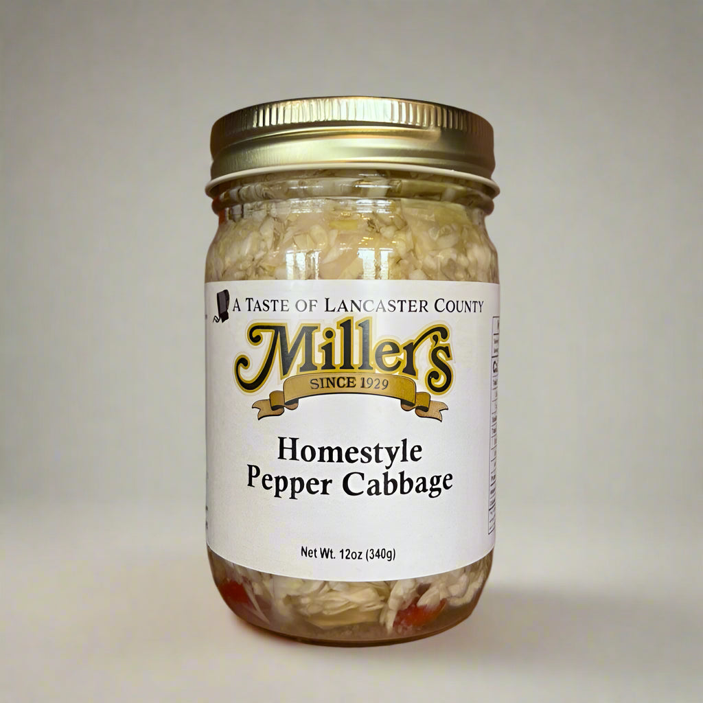 Our Pepper Cabbage is a lively medley of crisp cabbage, bell peppers, and a hint of spice. This tangy and crunchy condiment adds a burst of flavor to hot dogs, sandwiches, and barbecue dishes. It's a favorite at picnics and cookouts.