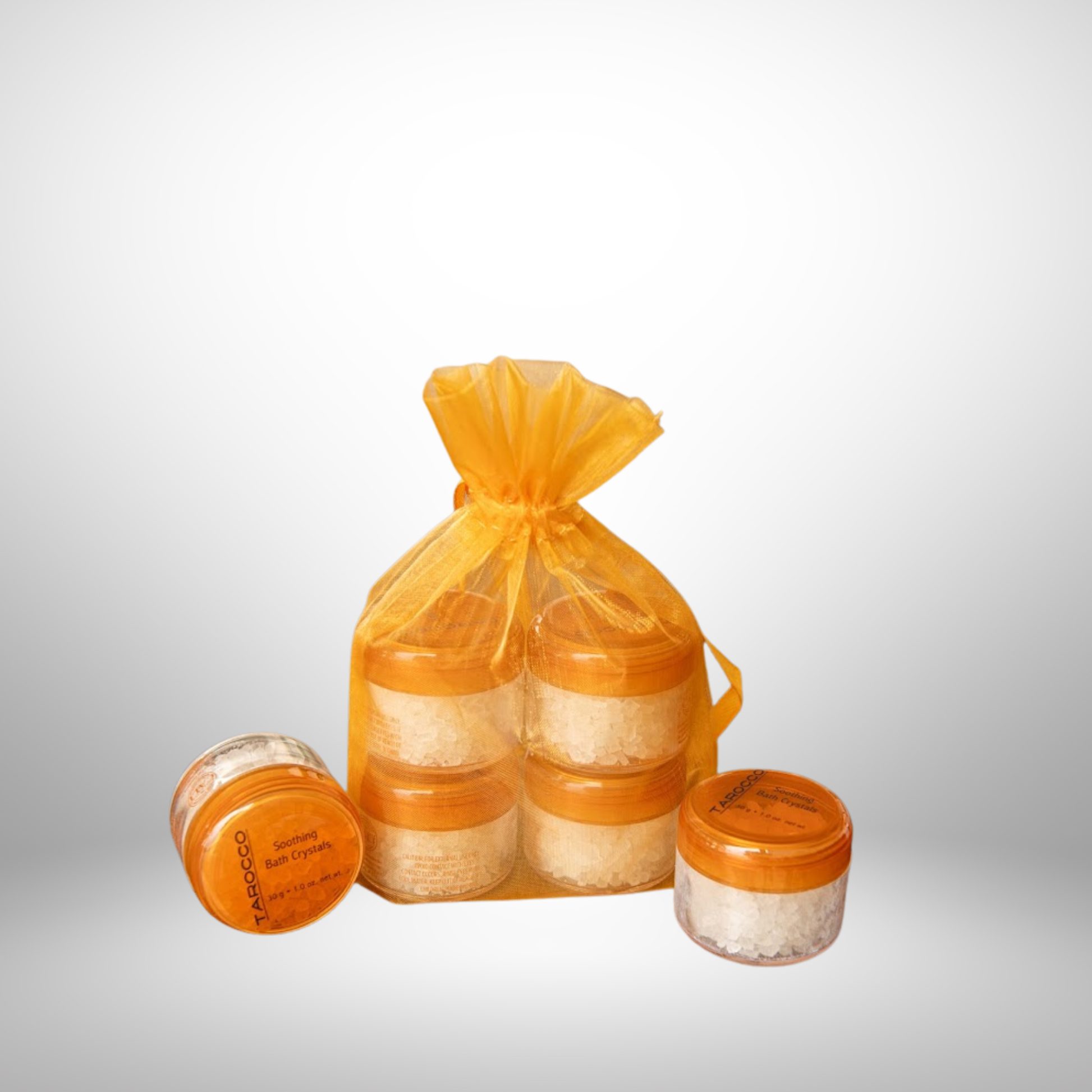 Bath crystals featuring olive oil with extracts of Sicilian Blood Oranges, rich in vitamin C and other powerful antioxidants.
